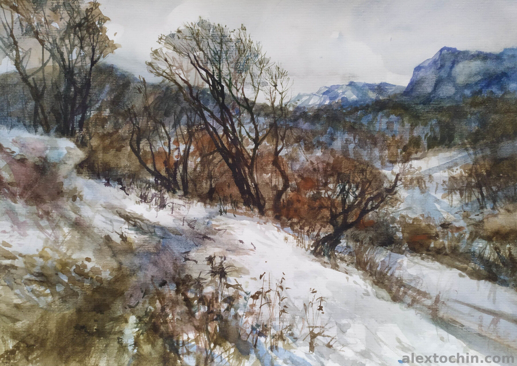 Снег в Теберде бумага, акварель, 21/29 см., 2026 г.