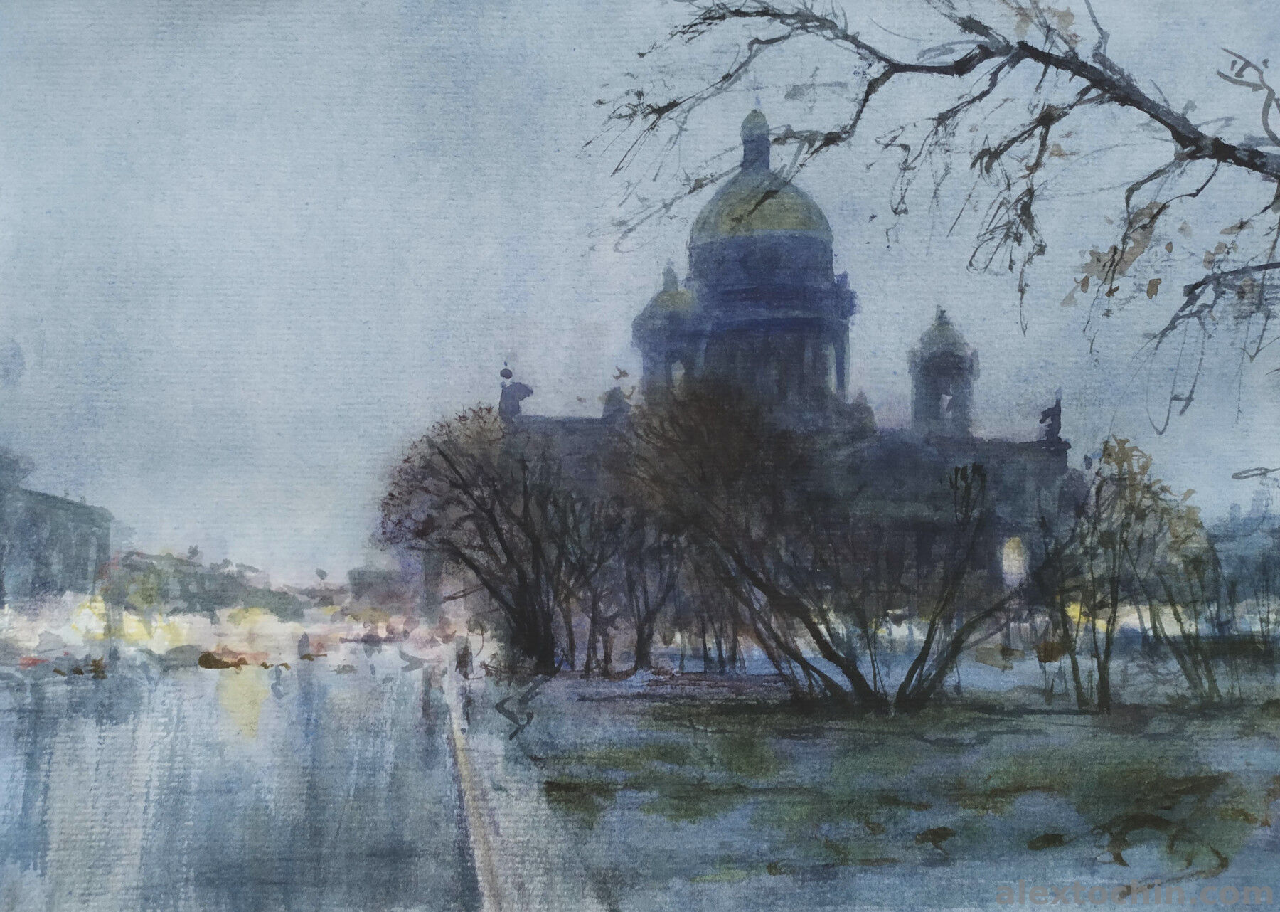 Исаакий. Сумерки бумага, акварель, 21/29 см., 2026 г.